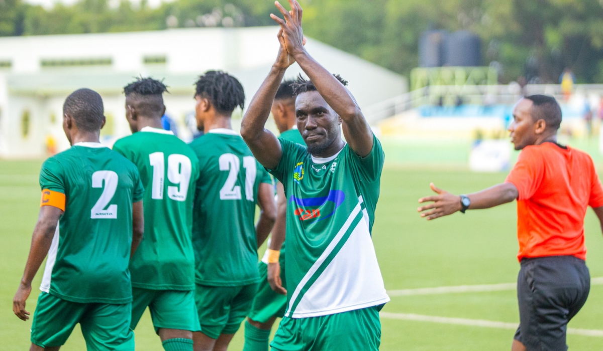 SC Kiyovu striker Erisa Ssekisambu applauds for the Green Baggies supporters after scoring a goal during a league tie. The attacker Ssekisambu was left dejected after his penalty miss during Sunday’s 1-0 defeat to Sunrise