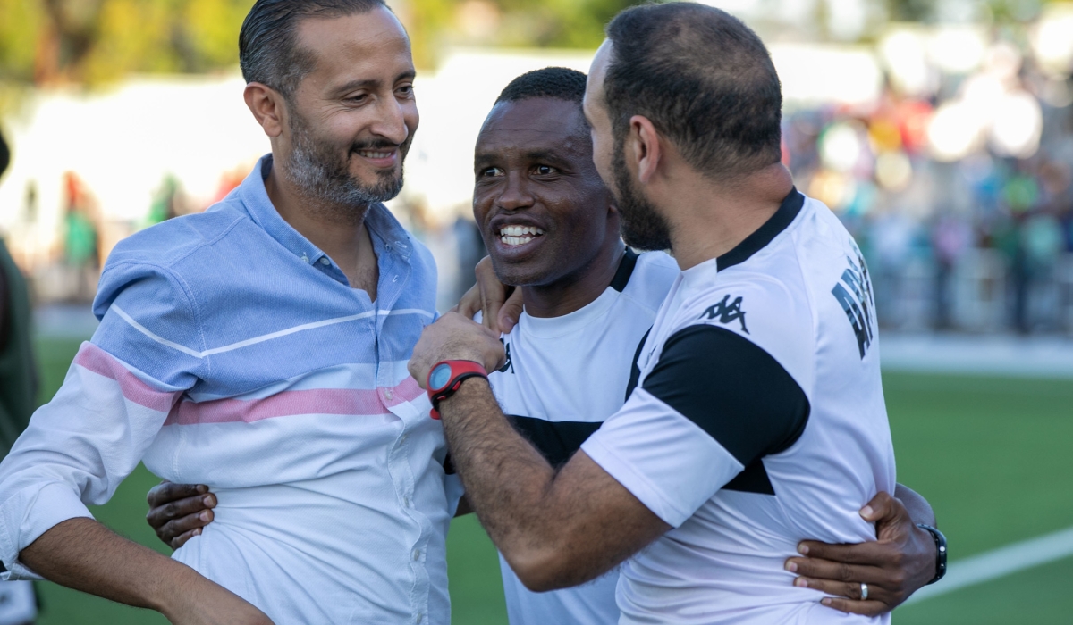 APR FC coaches chat after beating SC Kiyovu at Kigali Pele Stadium on May 14. The army side is tied on 60 points with Kiyovu but the former lead the table with a superior goal difference. Olivier Mugwiza