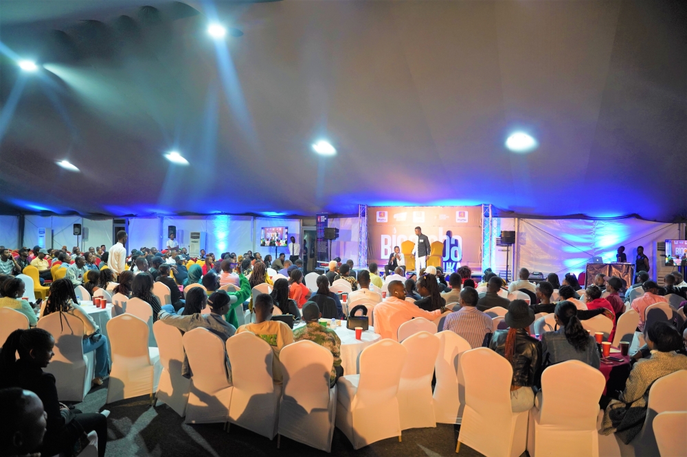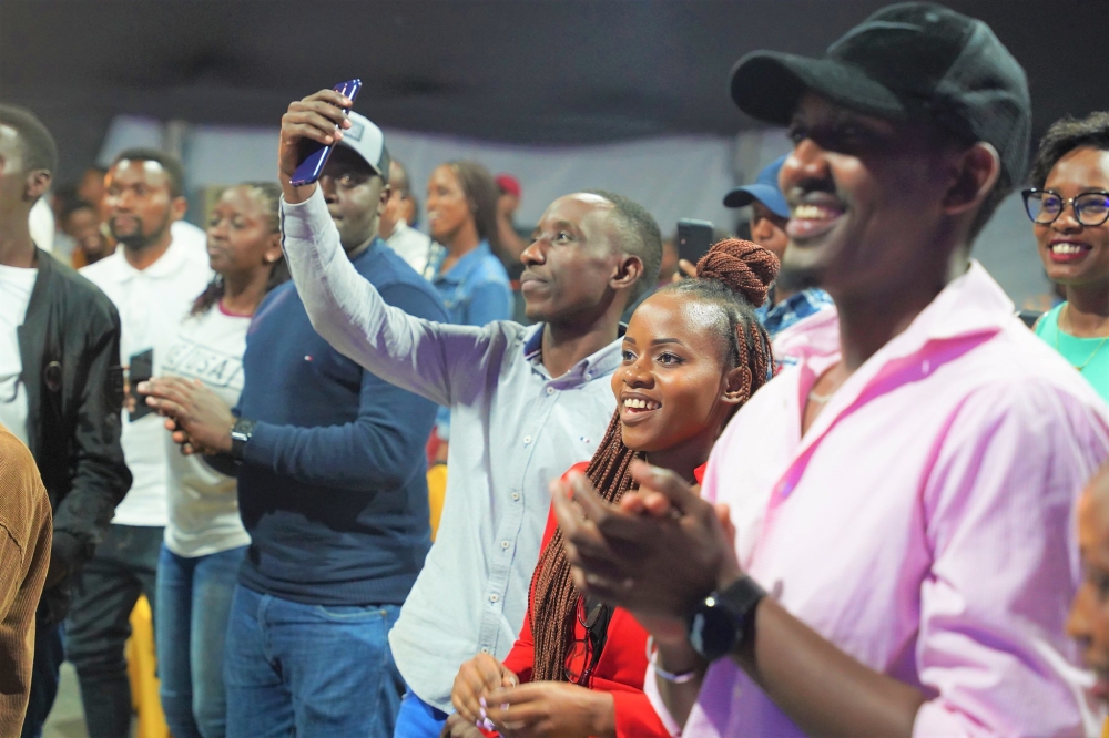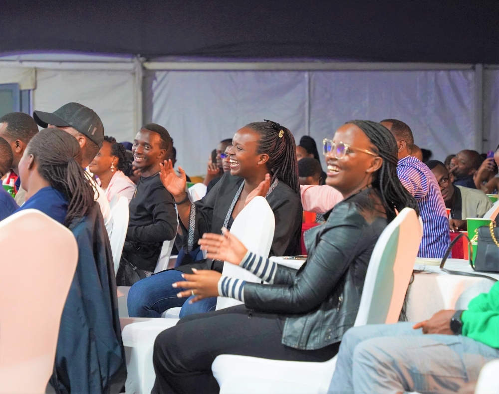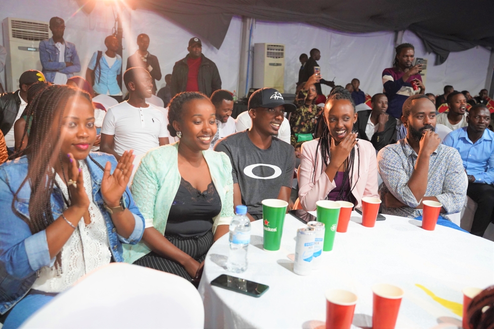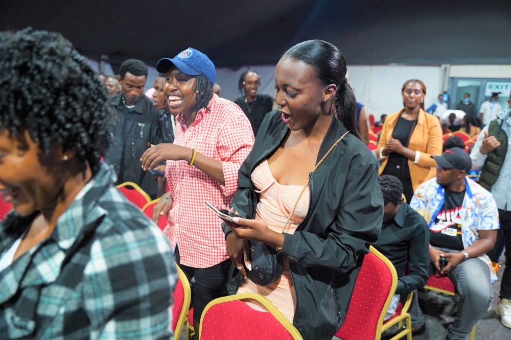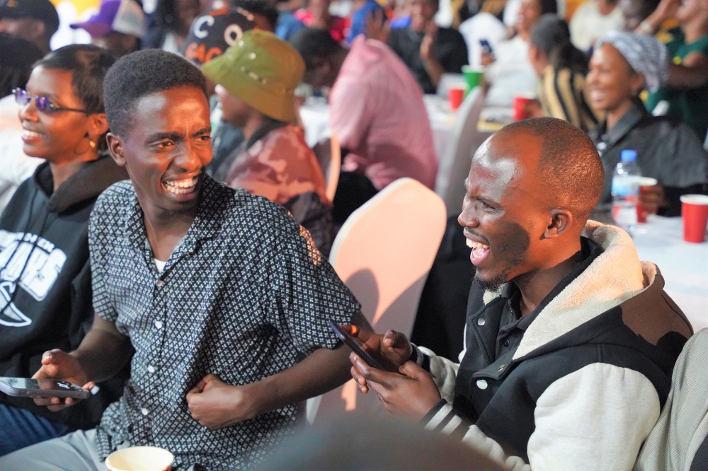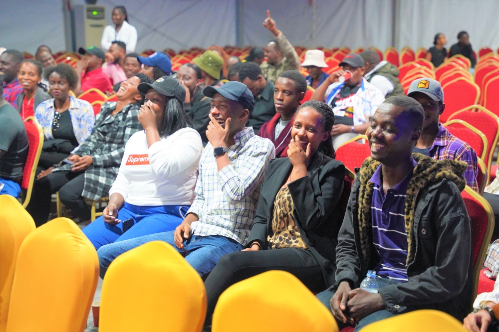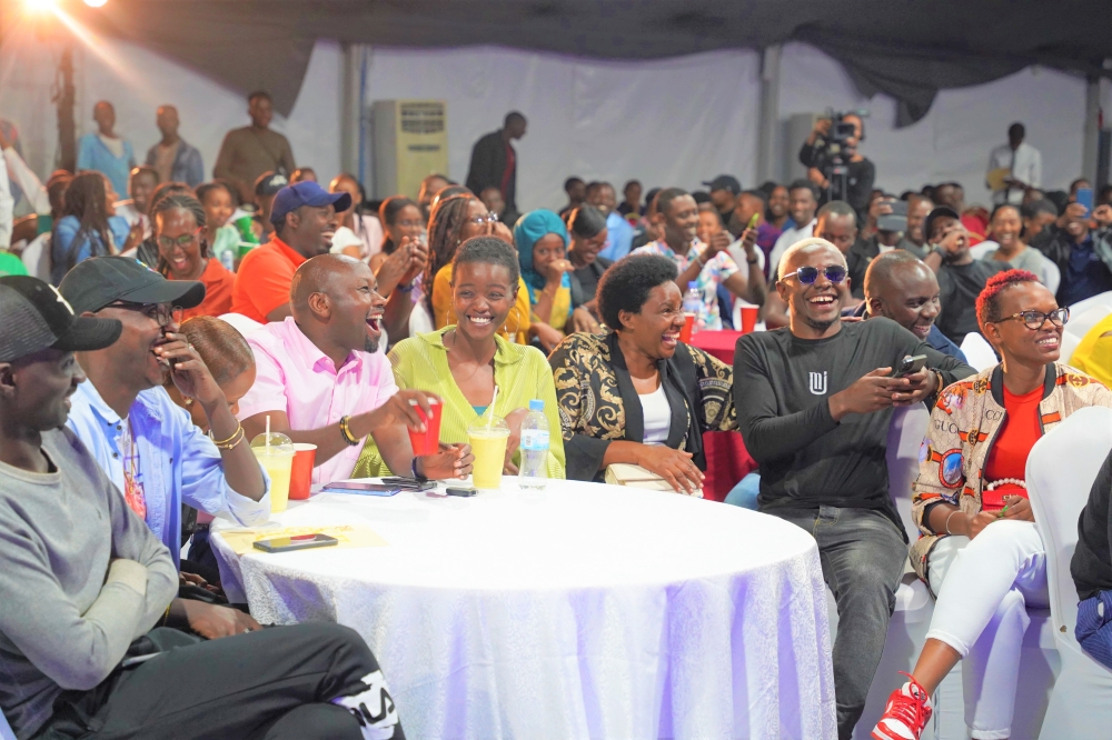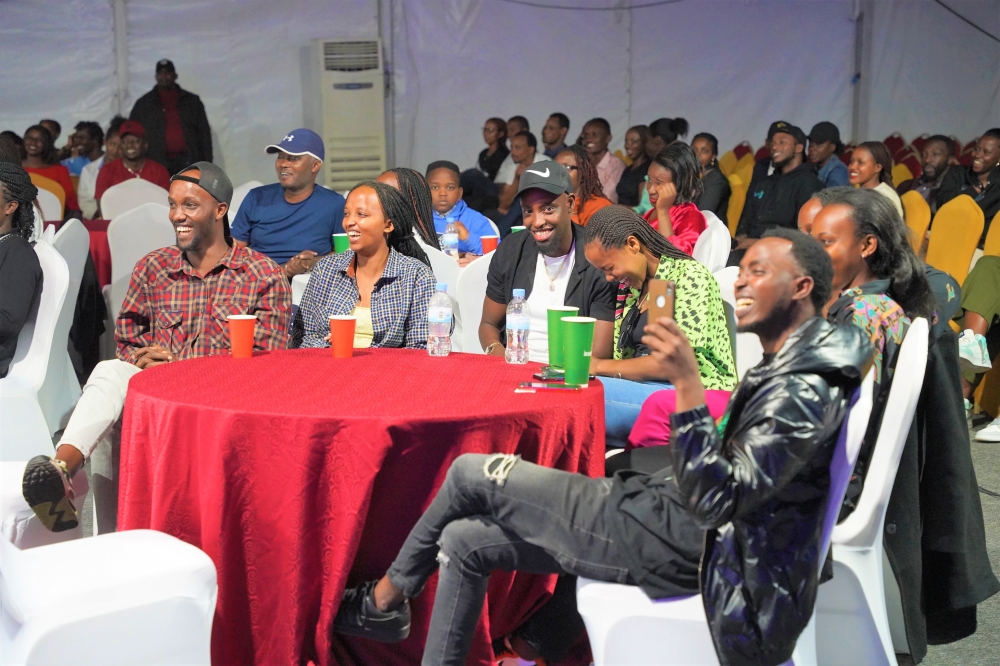 At around 6:00 PM comedy lovers started arriving at Camp Kigali who enjoyed the music from DJ Dallas as they waited for the show to kick off. At 7:50 PM the show's MC Anita Pendo called up on stage the first performer of the night, an upcoming singer and comedian Patrick Mazimpaka. Mazimpaka started by performing his song mixing it up with jokes related to his love life saying how ladies used to dump him due to Albinism but finally got someone to love him and now he is a married man. Fally Merci was the next on stage. He sang gospel songs and made jokes about ADEPER choirs saying that they don’t need translators for people with hearing impairment among other jokes. Merci later welcomed one of the Genz comedians called Muhinde who joked about short people and advised people who wanted to get married but of course, all his advice was funny. He further joked about how everything became fake giving an example of the new song of Dorcas and Vestine where the video and audio are different as well as online shops saying that he recently bought Meddy’s album but later download it and found that it was someone else’s songs Following Muhinde various comedians from Genz performed for the audience. Pendo then returned on stage while the fans were still waiting for the next comedian. She passed the microphone to different artists who attended the show and asked them to sing for the audience. Those singers include Victor Rukotana and Judas Muzika group. Finally, the stars of the day Japhet and 5K Etienne got on stage at around 9:45 clad in Black and white. They took on with their bigomba guhinduka jokes about how naming Gorillas ceremony has to have other ceremonies prior to the event such as wedding as well as allowing the Gorillas to invite their fellow animals to attend the ceremony and having a baby shower photo shoot in Gisenyi. Among other jokes, they talked about how speed cameras commonly known as Sophia can be a good idea at weddings instead of waiting for the photographers who might give out pictures when the couple already divorced because they take long to provide the pictures. While they were doing Bigomba guhinduka they mixed it up with ‘Muhamagare’ their new segment where during the performance they called National television, Bank and Police spokesperson as well as Traffic spokesperson. The duo kept on cracking jokes around various topics and also talked about how a lot has changed since they started ‘Bigomba guhinduka’ giving an example of a restaurant of Uncle Austin, King James’s Alimentation, and Maize Factory among others. The show ended at 11 PM as the duo announced their upcoming show dubbed ‘Muhamagare Live. '