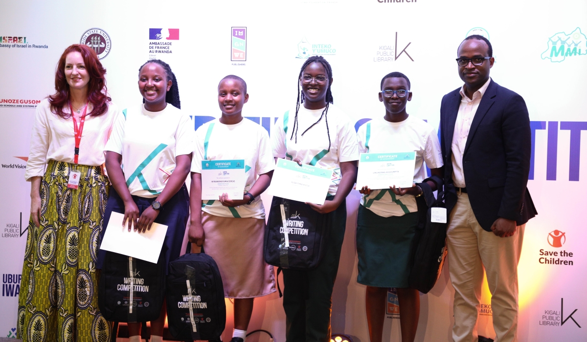 The Minister of State in charge of Primary and Secondary Education, Gaspard Twagirayezu poses for a photo with the overall winners in the upper secondary category during the awarding ceremony in Kigali on Saturday, June 3. All photos by Craish Bahizi