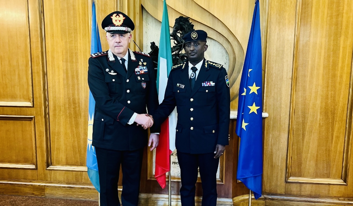 The Inspector General of Police (IGP) Felix Namuhoranye, is in Italy for a 3-day working visit at the invitation of his counterpart, Lt. Gen Teo Luzi, the Commander General of the Italian Arma dei Carabinieri. On Tuesday, June 6, IGP Namuhoranye and Lt. Gen Luz held discussions in Rome, on strengthening the existing bilateral cooperation between the two institutions. Rwanda National Police (RNP) and Carabiniere signed a cooperation pact in 2017, which has since guided strong policing relations in capacity development such as peace support operations, counter-terrorism, aviation security, public order management, VIP protection, cybercrime, traffic and road safety, public health and environmental security, among others. On Monday, June 5, IGP Namuhoranye also attended the 209th anniversary of the foundation of Carabinieri, at Salvo d'Acquisto barracks in Rome. He also visited the Sabaudia Centre of Excellence for the Protection of the Environment and the Care of Territory; Special Operations Group headquarters; and Carabiniere Command and Coordination Centre.