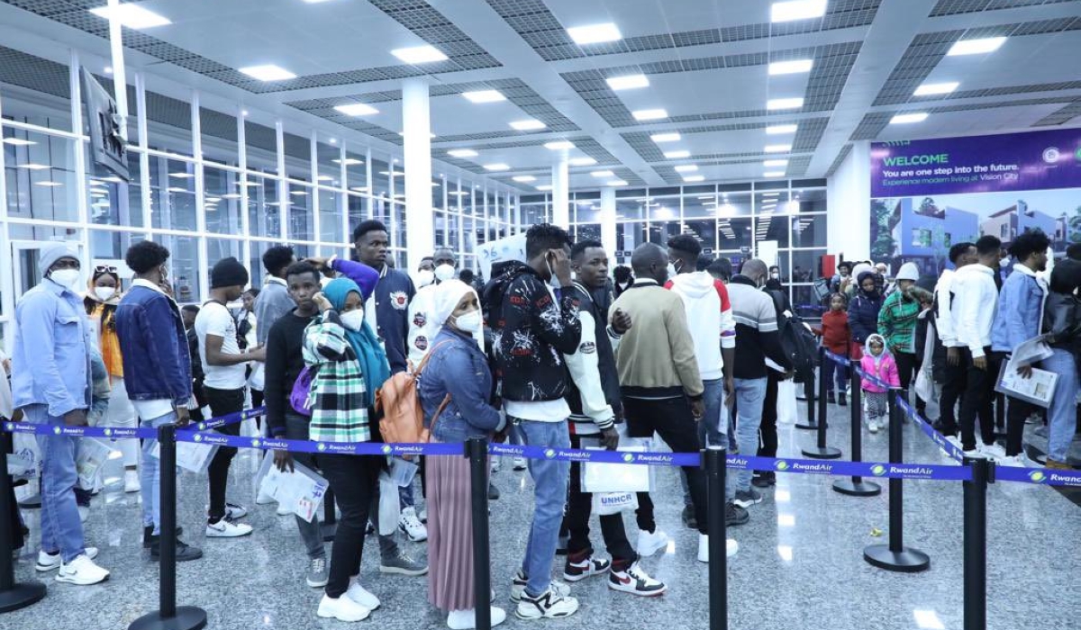 Some of the 134 refugees and asylum seekers evacuated from Libya on their arrival at Kigali International Airport on Monday, June 12. The group becomes the 14th to arrive in the country since the evacuation began in 2019. According to the Ministry in charge of Emergency Management, the latest group includes Eritreans (64), Sudanese (35), Somalis (15), Ethiopians (17), two Cameroonians and one Malian. They will be accommodated in Gashora Transit Centre in Bugesera District. Courtesy