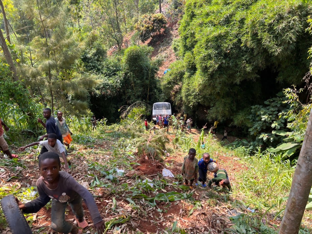 Three people were injured in a minor bus accident in Rusizi town, on Saturday, June 17. The Rwanda Broadcasting Agency (RBA) tweeted photos of the bus after it veered off the road and plunged into a valley in the morning. Uyu munsi, abantu 5 bakomerekeye mu mpanuka y'imodoka ya Sosiyete ya Volcano yarenze umuhanda ubwo yavaga muri Gare ya Rusizi irenga umuhanda, igwa mu kabande. #RBAAmakuru pic.twitter.com/2UYDoWJg5B — Rwanda Broadcasting Agency (RBA) (@rbarwanda) June 17, 2023 The spokesperson for the Traffic and Road Safety Department of the Rwanda National Police (RNP), SSP René Irere, told The New Times that the accident happened at around 10:30 am at Kamembe bus park in Rusizi district. Irere said the bus driver, Emmanuel Niyonsenga, had parked the vehicle in a steep area. It slipped and ran into the road, knocking and injuring a motorist by the name of Damas Byiringiro, before it plunged into a valley. Two people who were on board also suffered injuries. According to reports by Rusizi FM, a community radio in the region, the vehicle had been parked near a cliff as the driver waited for more commuters to come in when, all of a sudden, it veered off the road. Muri Gare ya @RusiziDistrict Imana ikinze ukuboko,ubwo imodoka ya Kompanyi ya #volcano yamanukaga muri Gare ikaruhukira mu mu kabande gahari, batanu bagahita bakomereka. Imiterere y'aho bapakirira abagenzi niyo ntandaro. @Rwandapolice pic.twitter.com/ba62jBow2d — Radio Rusizi FM 89.8 (@rusiziradio) June 17, 2023 All the three injured people, Irere said, were taken to Gihundwe Hospital for treatment. No fatalities have been reported.