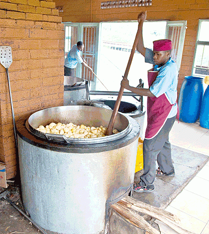 A cook preparing a meal of Irish Potatoes at Riviera High School for the teachers marking the national exams. At least 195 teachers were treated for suspected food poisoning after eating meals served at the school, health officials at the school clinic confirmed Monday. The Sunday Times / T. Kisambira.