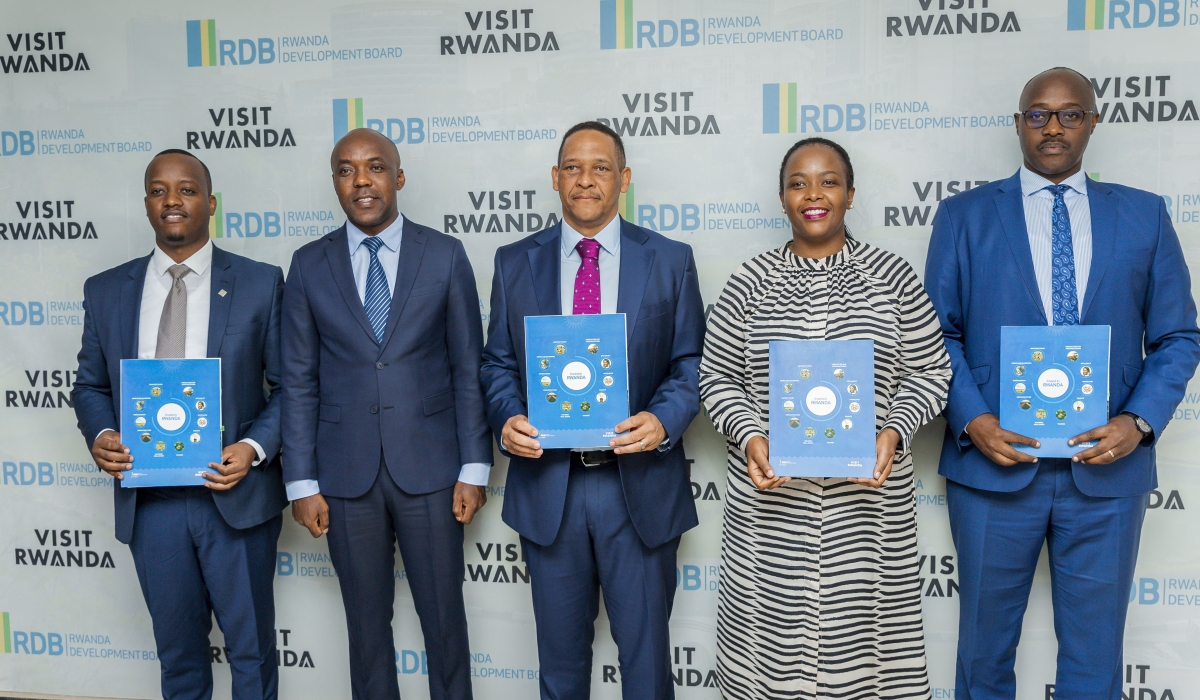 L-R: Regis Rugemanshuro, CEO of RSSB; Ernest Nsabimana, Minister for Infrastructure; Hans Paulsen, Executive Vice President for East and Southern Africa at Vivo Energy; Clare Akamanzi, CEO of RDB; and Pudence Rubingisa, Mayor of Kigali City, pose for a picture after signing the agreement on Thursday, June 22.