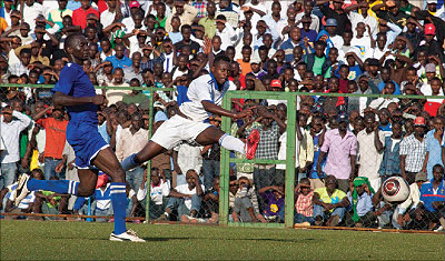Kambale Salita (L) scored one against Sc Villa on Sunday. The former Marine striker is expected to lead Rayon’s attack against APR in today’s final. The New Times / T. Kisambira.