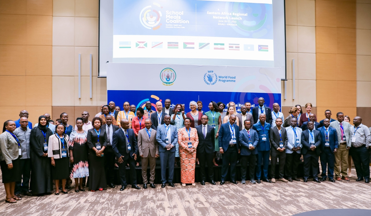 Delegates pose for a group photo at the official launch of the Eastern Africa Regional School Meals Coalition Network, hosted by the World Food Programme (WFP) in Kigali from June 26-27. Craish Bahizi