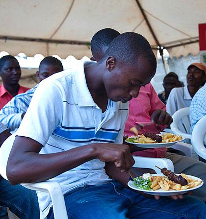 Meal time as vendors dig into the dinner provided by The New Times management.