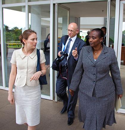 Foreign Affairs Ministry PS Mary Baine (R) with Katarzyna Peu0142czyu0144ska-Nau0142u0119cz (L) the undersecretary of state of Poland during the latter’s visit on Thursday. The Sunday Times T.Kisambira.