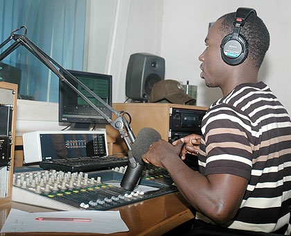 A DJ in a studio of a local radio station. The New Times/ File.