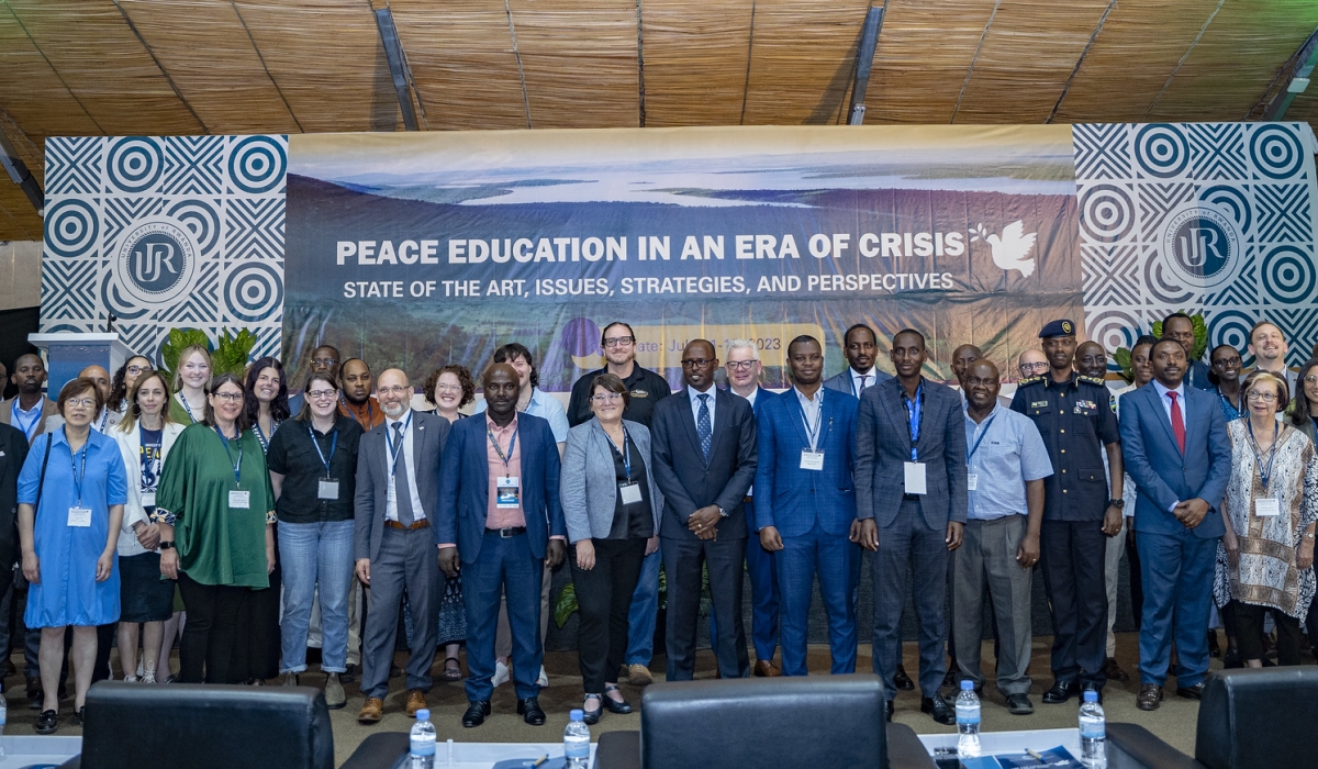 Delegates pose for a group photo at the conference on the most effective approaches to address conflicts, promote human well-being, and achieve sustainable peace on Tuesday,July 12. All photos by Emmanuel Dushimimana