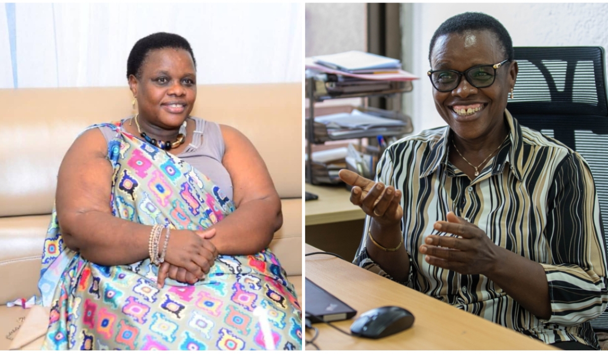 (Left) Eugenie Mukantagwera in 2021, when she weighed 130kgs. (photo courtesy). (Right) Mukantagwera smiles during an interview in 2023, after losing 45kgs in three years. Photo by Willy Mucyo