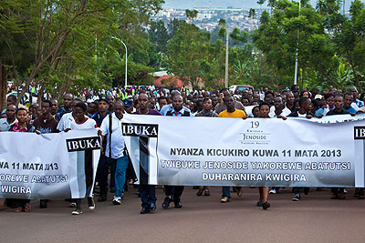 Mourners participate in a ‘Walk to Remember’ the victims of the 994 Genocide in Kicukiro. SaturdayTimes/ Timothy Kisambira.