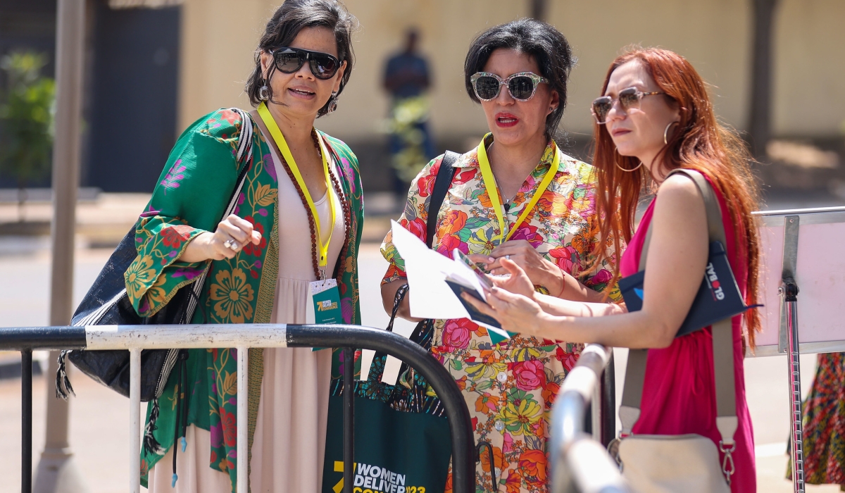 Delegates interact after picking their badges on Saturday, July 15. The Minister of Environment, Dr Jeanne d’Arc Mujawamariya, has hailed organisers for successfully implementing zero waste at the Women Deliver Conference. OLIVIER MUGWIZA