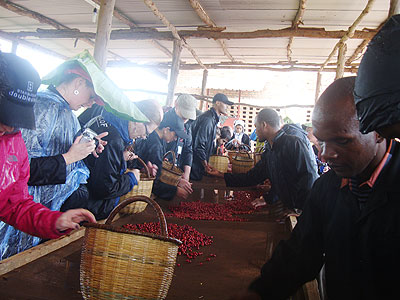 Starbucks officials at a coffee exhibition during their visit in Kigali. The New Times / Courtesy.