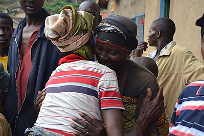 A refugee embraces a relative during their tour of the country. The New Times/ Courtesy.