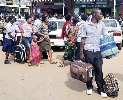 Students at Nyabugogo Bus terminal returning to their respective schools after first term holidays on Monday. The New Times, John Mbanda.