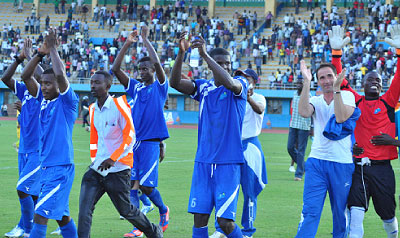 Rayon Sport coach Didier Gomez da Roza (2nd right) has admitted that the league title is now in with his grasp but is not ready to celebrate yet. The New Times / Plaisir Muzogeye.