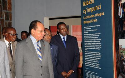 Senate President Jean Damascene Ntawukuliryayo (R) with visiting DR Congo Senators being conducted around Kigali Genocide Memorial Centre on Monday. Sunday Times/John Mbanda.