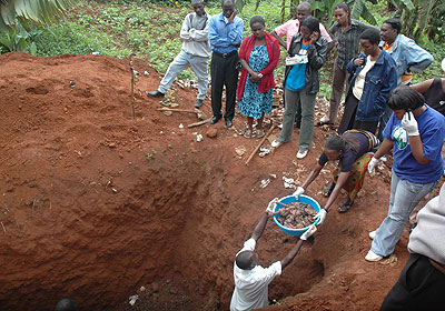 Volunteers remove the newly-found remains. The New Times/ S. Rwembeho.