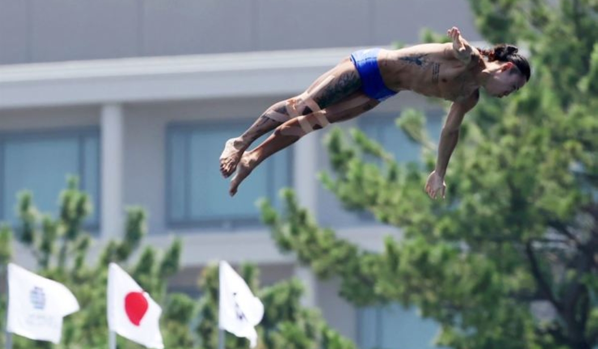 Ahead of competitions, athletes set goals for themselves, such as winning medals or breaking their personal records. Coming home alive in one piece is typically not one of them. And high diving isn't your typical aquatic sport, either. Requiring athletes to jump off a platform set 27 meters above ― about as high as a 10-story building ― and to perform all sorts of twists and turns, high diving is clearly not for the faint-hearted. But heights have never been an issue for Choi Byung-hwa, Korea's first competitive high diver who made his world championships debut in Japan this week. I didn't fly on an airplane from Korea to Japan. I rode clouds to get here, Choi said with a grin after finishing 23rd at Seaside Momochi Beach Park in Fukuoka. I am just not afraid of heights. And you can overcome those fears with meditation and repetitive training. Not being afraid of heights is one thing. But risking life in an athletic pursuit is quite another. In Choi's words, high divers crash with the surface of water feet first while traveling at 90 kilometers per hour. Each dive takes such a physical and mental toll that it's difficult for divers to train as often as they want. So why does Choi put himself through such ordeals? I do high diving because I can feel alive, Choi said. I came here to survive. Before I left for the worlds, I told people that my goal was to complete all four of my attempts safely and still be in one piece at the end. I've done just that and I feel so alive now, because I've been on the edge of that cliff four times and made it back. Choi admitted that he often has a hard time staying focused in moments before his dives, and blamed it on his lack of competitive experience. My goal is to concentrate on the move I am about to do, he said. But I do get nervous in competitions and get distracted by different sights, sounds and surroundings. Being able to control these elements is part of becoming a successful diver. Choi said high diving is that rare sport where athletes don't want their rivals to fail, because doing so could lead to fatal consequences. If you look into the locker room in sports like water polo, it's like a war in there and the mood is pretty intense, he said. For us, we all hug and high-five each other and wish each other a safe dive. That's part of the culture here. I never want any of my competitors to make mistakes. Choi was a swimmer earlier in his life before also dabbling in rowing and normal diving. He started his high diving training recently and earned an invitation to the world championships this year. Choi finished in last place with 187.50 points after his four attempts. He was the only diver not to surpass 200 points, but it didn't seem to matter to Choi. Choi said he was particularly pleased with the way he pulled off his fourth dive, an inward three somersaults pike with a half twist. He had never even attempted the move in practice and still scored 57.00 points, his highest score of the four dives. I could have worked on it yesterday, but I was just so spent physically and mentally. So I decided to rest and recharge, Choi said. This was the most difficult technique I could have done, and I am happy that I executed it successfully. I know I am not as talented as these other divers, but I want to keep breaking my personal records and become a more competitive high diver as quickly as I can. As the country's first high diver with no one acting as a guiding light, Choi said he felt honored to see the Korean flag on display at the high diving venue this week. To get to this point, Choi has had to teach himself a great deal about the sport, from techniques to proper nutrition, through YouTube videos and academic papers he found online. Choi sees himself as an accidental trailblazer, someone who got into high diving simply because he wanted to, not because he wanted to be the first to do so from Korea. But if someone wants to join him, Choi will be prepared to share his hard-earned wisdom and knowledge. I think it may take a long time before we see another high diver from Korea, but if someone wants to pick up the sport, I am ready to teach them absolutely everything I know, Choi said. I've had my trials and errors along the way. Now I have a better idea of how to train and how to get my body into the right shape, and also I have a better understanding of the culture of the sport. Choi's body is covered in tattoos, including phrases in Korean and English. On his left thigh are the words from Pierre de Coubertin, the founder of the modern Olympics: The most essential thing in life is not conquering but fighting well. It was part of the Olympic spirit as taught by Choi's late grandfather and former Olympic runner, Choi Yun-chil. The younger Byung-hwa conceded that he didn't know much about his grandfather's athletic feats ― Choi Yun-chil, who died in October 2020, won Korea's very first Asian Games gold medal in 1954 and famously led the marathon at the 1948 Olympics before dropping out with about 4 kilometers left ― and that he was never a good grandson. He never once put any pressure on me to represent the country as an athlete, Choi said. He never forced me to do anything. He gave me nothing but love. High diving isn't yet an Olympic sport but if it joins other aquatic sports in the quadrennial event, Choi could have a chance to become the second Olympian in his family. It would be an honor to make it to the Olympics but that's not my end goal, Choi said. I may have finished last here and I may be rougher around the edges than veterans, but that's okay. I'd obviously like to be better, but this is just the beginning for me. I know I will continue to get better and better. That's why I came here. (Yonhap)