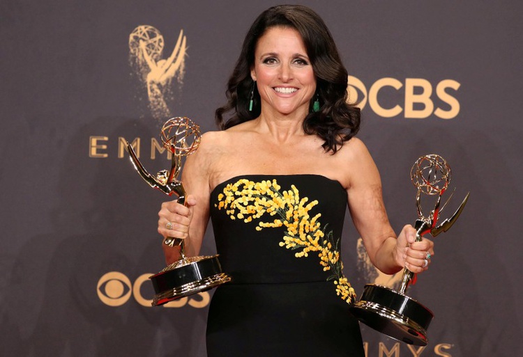 Julia Louis-Dreyfus holds her Emmys for Outstanding Lead Actress in a Comedy Series and Outstanding Comedy Series for Veep. / Internet photo