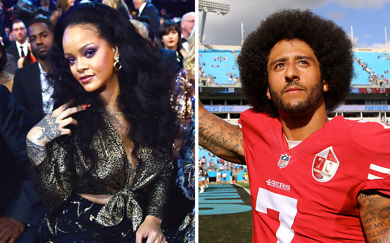 Rihanna turned down Super Bowl halftime show in support of Colin Kaepernick (right). Net.