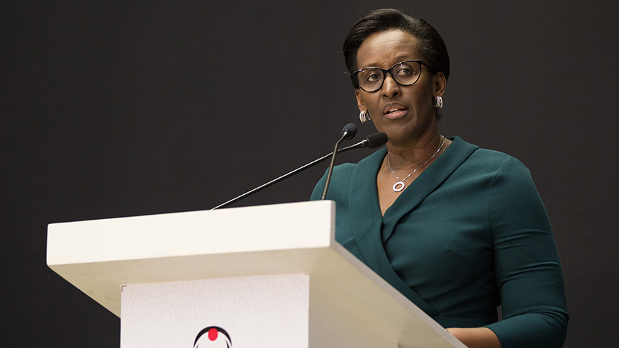 First Lady Mrs Jeannette Kagame delivers the opening remarks of u2018Women of Impactu2019 High Leve Panel on Day II of the 5th International Conference on Family Planning at Kigali Convention Centre yesterday. Courtesy photos.