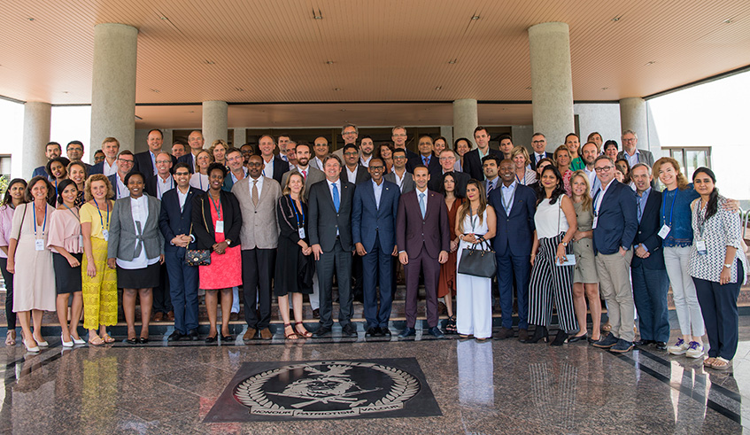 President Kagame with a delegation of Young Presidentsu2019 Organisation in Kigali yesterday. The 80-member delegation is comprised of young business leaders from Belgium, USA, Monaco, Luxembourg, Lebanon, UK, Kenya and the Great Lakes YPO Chapter. Village Urugwiro.