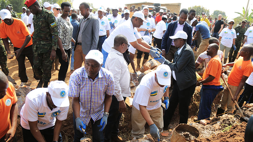 L-R: EASF Director Dr Abdillahi Omar Bouh, Prime Minister Edouard Ngirente, Chairperson ofu00a0 Friends of EASF Colonel Joern Rasmussen and Defence Minister James Kabarebe during Umuganda in Gikomero, Gasabo District yesterday. Sam Ngendahimana.