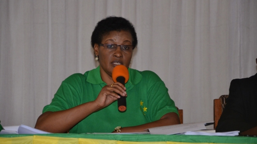The campaign manager for RPF-Inkotanyi, party commissioner Julienne Uwacu (C), introduces the 80 parliamentary candidates of RPF-Inkotanyi and its coalition partners to the residents of Rulindo District yesterday. Nadege Imbabazi.