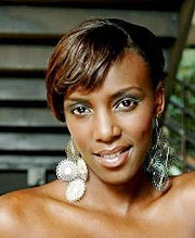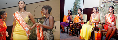 L-R : I MADE IT! Rita Uwera seems to say as she walks away from the stage;GIFTED PEOPLE! The four qualified beauties pose for photo.(photo by F. Goodman)