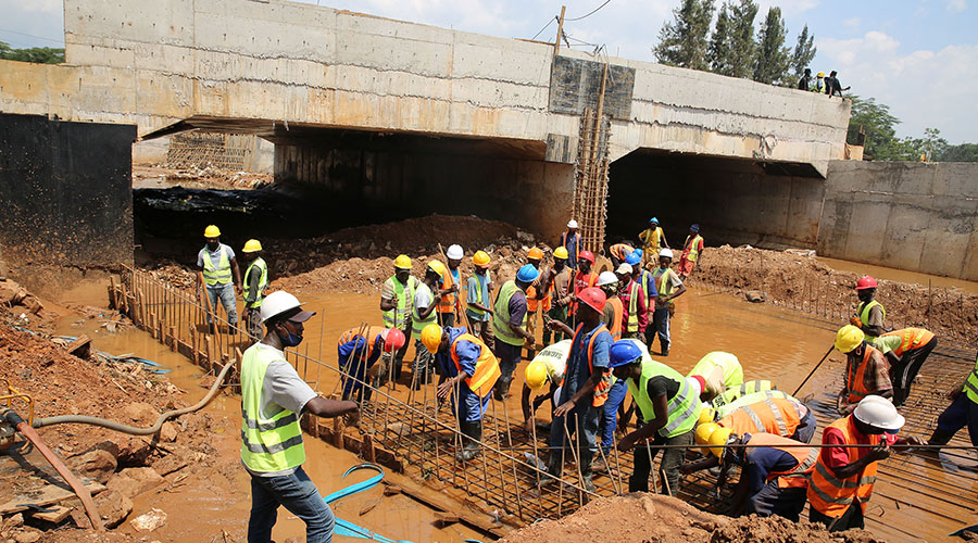 Workers during rehabilitation works of Mpazi drainage at Nyabugogo on January 7. Construction was one of the key drivers of recovery with regard to jobs in the second quarter of 2020.