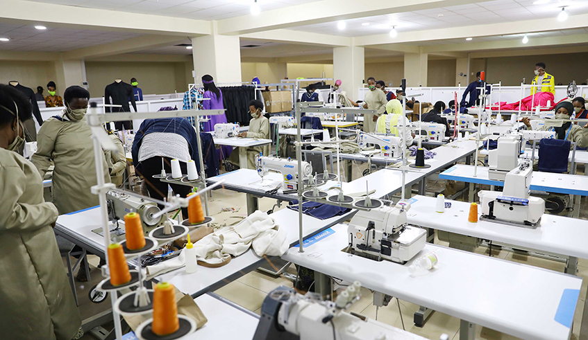 Workers at Apparel Manufacturing Group Ltd, a garment factory in Kigali, last year. / Photo: File.