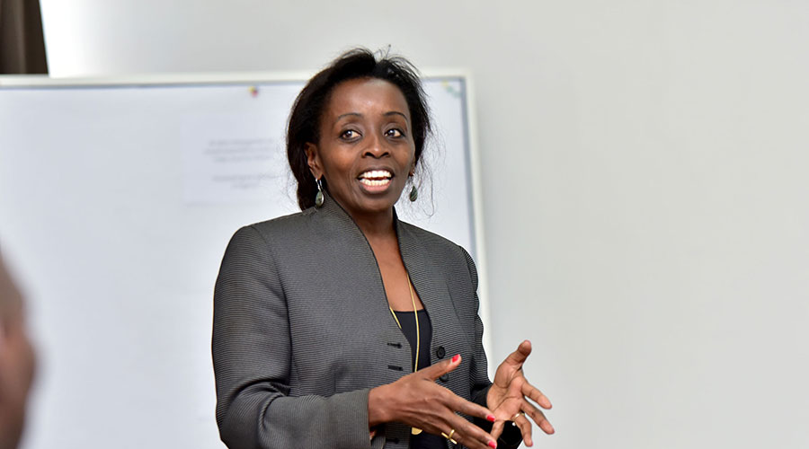 Alice Nkulikiyinka, BPN Rwanda Country Director, speaks during a meeting in Kigali.