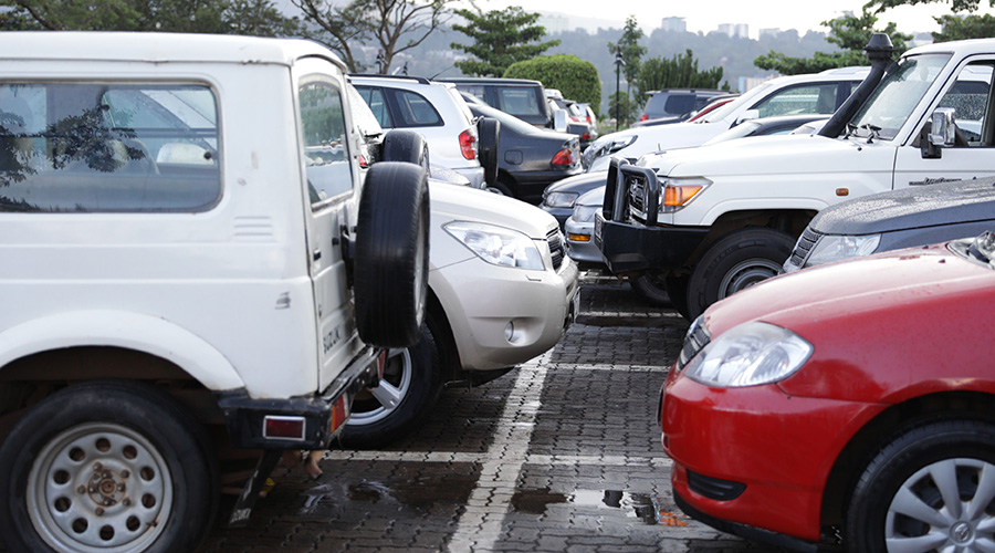 Vehicles in a parking lot. A section of vehicle owners secure Congolese number plates for their cars as well as entry cards despite never leaving the country.