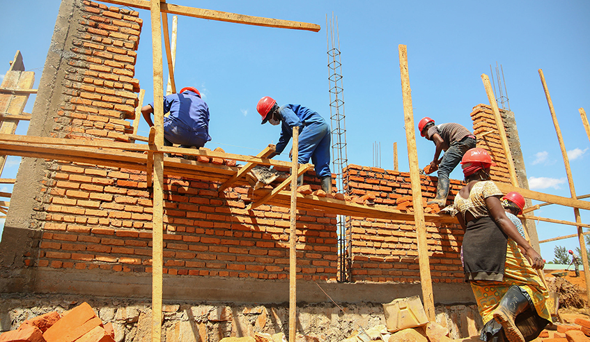 Workers during the construction activities of schools in April 2020.In human capital development, the intervention will go into improving learning outcomes which have been found to be falling back and uncompetitive. / Photo: File.
