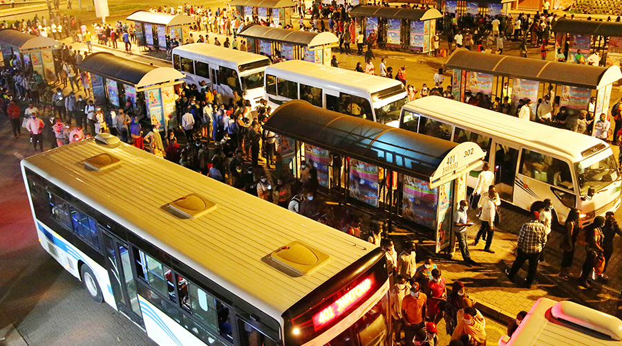 Commuters queue to board buses at Kigali downtown taxi park in July. Officials at the National Bank of Rwanda say that the economy is showing signs of recovery after Covid-19.