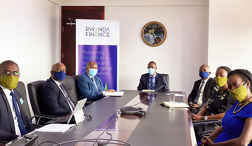 Senior executives of Rwanda Finance Limited led by Chief Executive Nick Barigye during the virtual signing ceremony with CDC Group, a UK-based development finance institution, on Tuesday, June 16. The new partnership is envisaged to help the former build capacity and tap into the vast network of the latter. / Photo: Olivier Mugwiza.