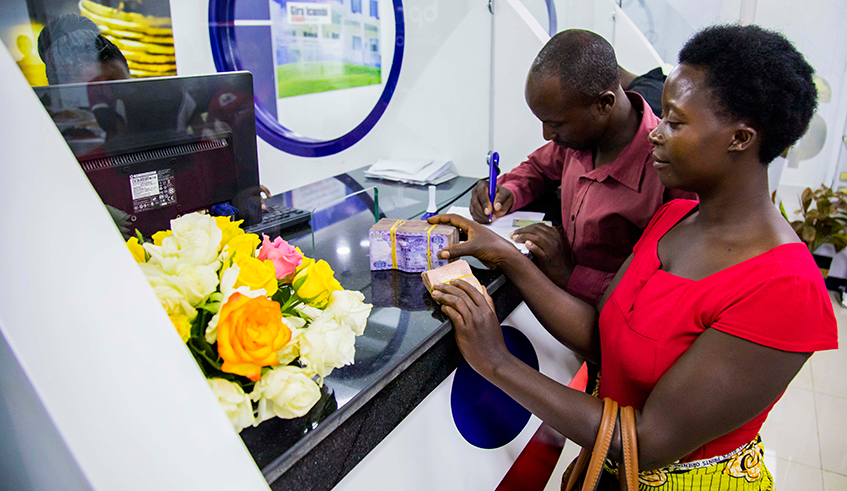 Banque Populaire du Rwandau2019s customers during their transaction at Nyabugogo branch in January. / Sam Ngendahimana.
