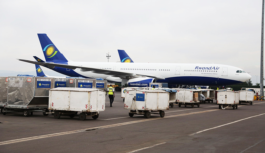 Cargo being loaded onto a RwandAir aircraft at Kigali International Airport last year. The National carrier is going to launch exclusively cargo flights to the cities of Brussels, London and Guangzhou to respond to the growing demand in the area of movement of goods. / Photo: Sam Ngendahimana.