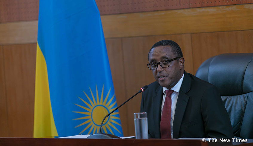 The Minister for Foreign Affairs and International Cooperation, Dr Vincent Biruta, addresses the media in Kigali yesterday. Norway is considering taking in up to 500 African refugees and asylum-seekers from Libya who are currently hosted at an emergency transit facility in Bugesera District, which is also known as Gashora Transit Centre.