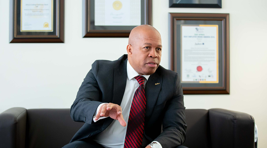 Jean-Bosco Harelimana, the Director-General of Rwanda Cooperative Agency, speaks during an interview. Photo: Sam Ngendahimana.