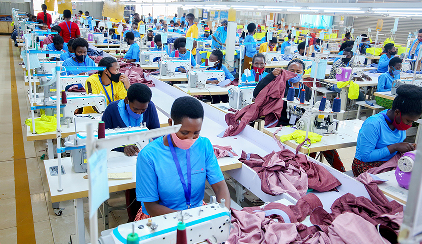 Workers on duties at Pink Mango, the garment factory at the special economic zone in the City of Kigali. / Photo: Dan Nsengiyumva.