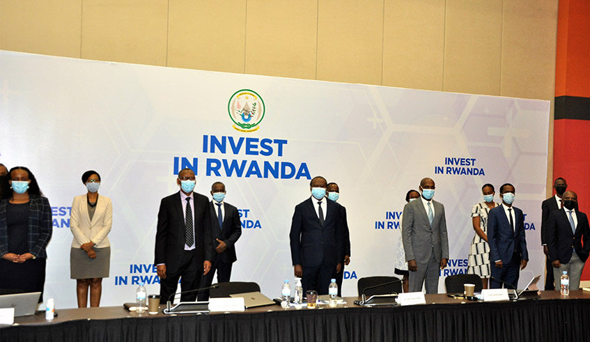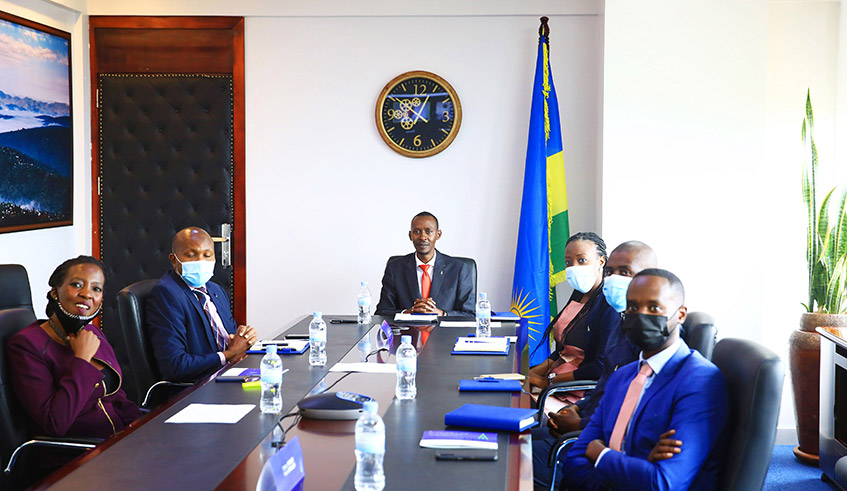 Rwanda Finance Limited officials during a meeting to sign an MoU between the institution and Belgian Finance Center in Kigali on Feb 24,202. / Photo: Sam Ngendahimana.