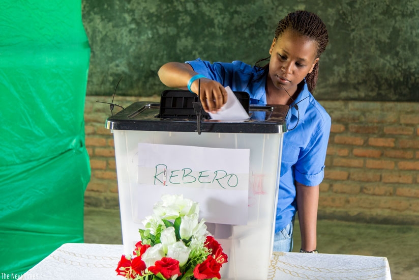 An 18-year-old resident of Rebero Village votes for the first time at Remera Catholic Primary School polling station. (Doreen Umutesi)