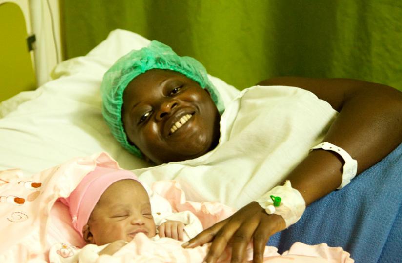 Tuyisabe smiles by her newborn  baby girl's side at King Faisal Hospital. (Doreen Umutesi)
