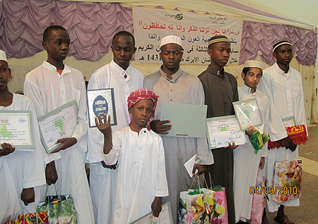 Quran recitation contest winners pose with their awards. Abdallah Cyusa is in the front (Courtesy photo)
