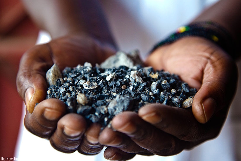 A miner displays minerals at Gatumba Mineral Site. The Chief Executive of Rwanda Mines, Petroleum and Gas Board, Francis Gatare, has said that the Government's recent announcement ....