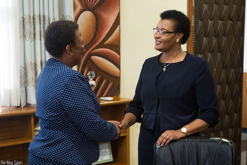 The Minister for Agriculture and Animal Resources, Gerardine Mukeshimana, addresses members of the parliamentary Standing Committee on Agriculture, Livestock and Environment during....
